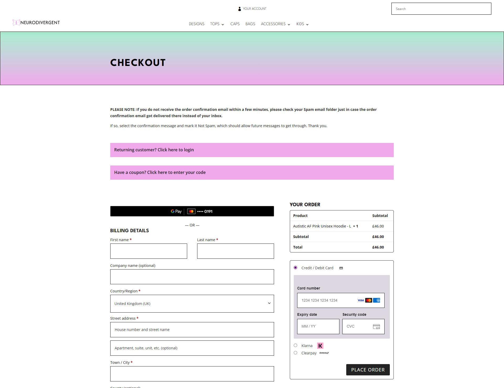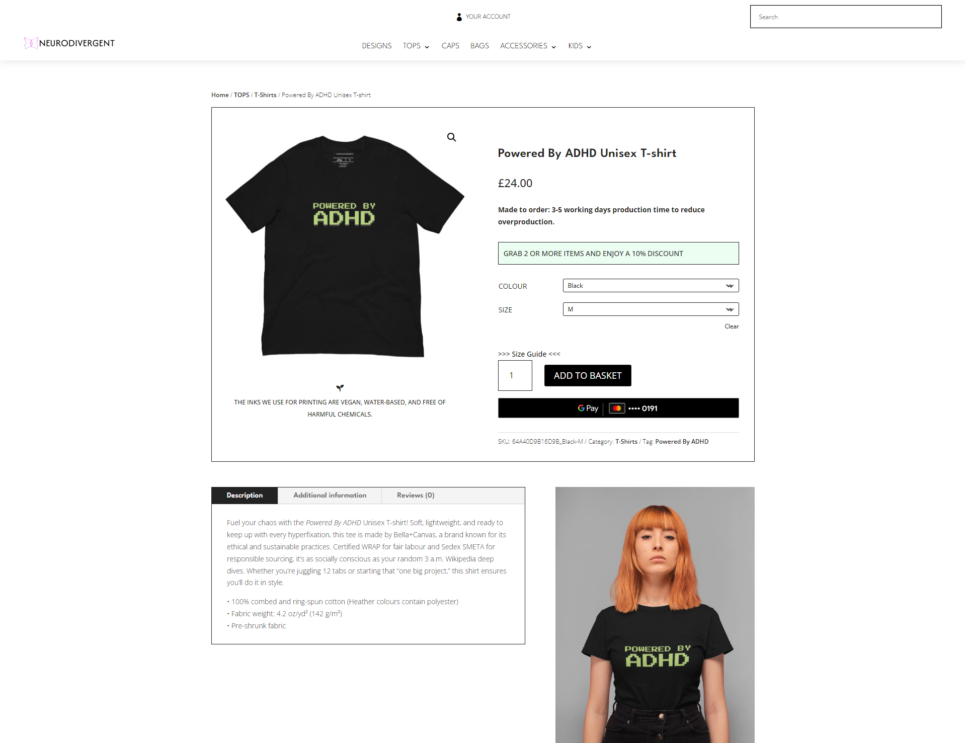 WordPress & WooCommerce online store for the UK-based clothing company Neurodivergent. The online store boasts variable products, seamless integration with Stripe and PayPal payment gateways, comprehensive on-page SEO, and various additional features.