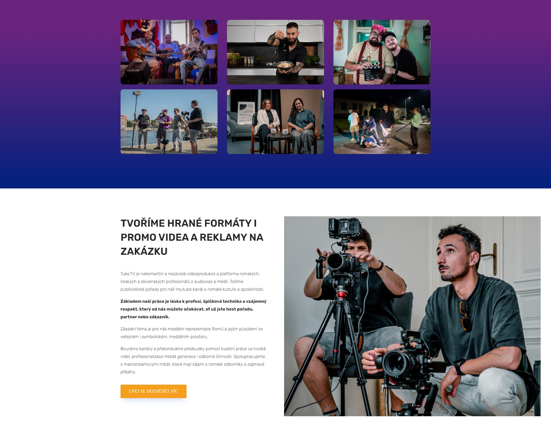 WordPress website for Tuke.TV: a Czech-based, non-commercial, independent video production platform for Roma, Czech, and Slovak audiovisual and media professionals. The project included a portfolio website featuring on-page SEO and smooth integration with Google Search Console.